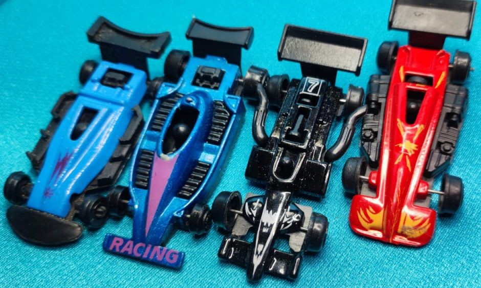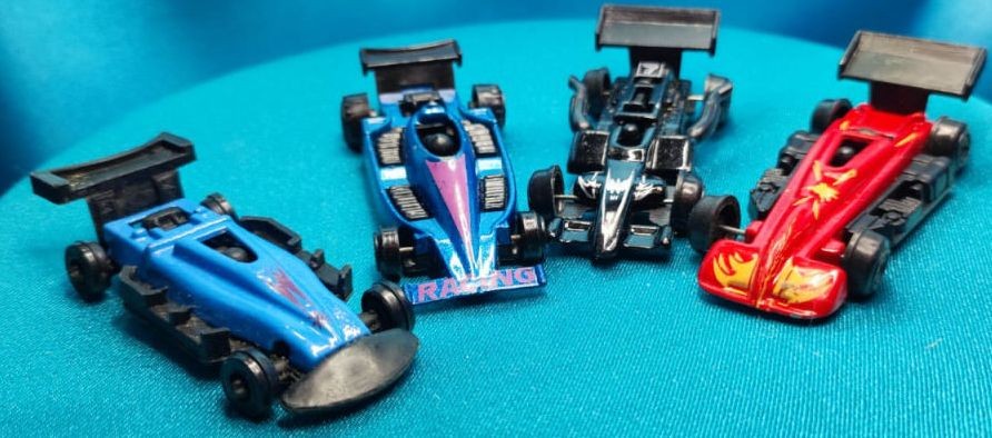 Lote com 4 carrinhos de plástico, colecionáveis, conforme fotos